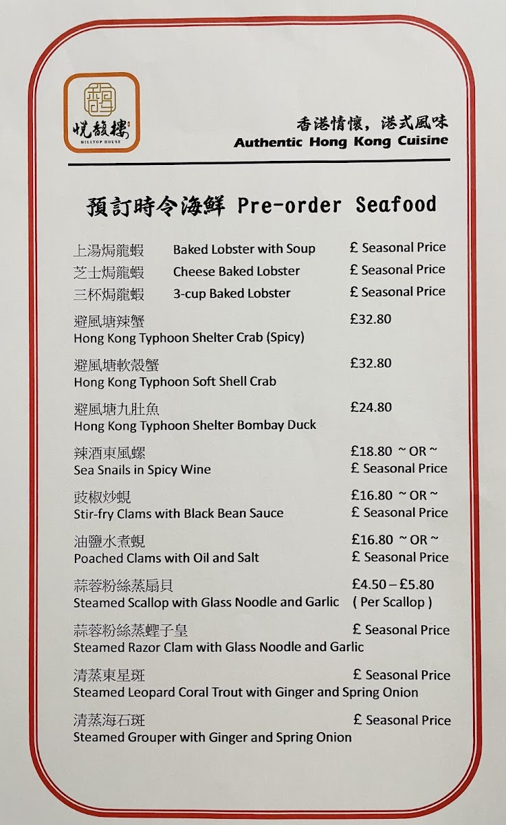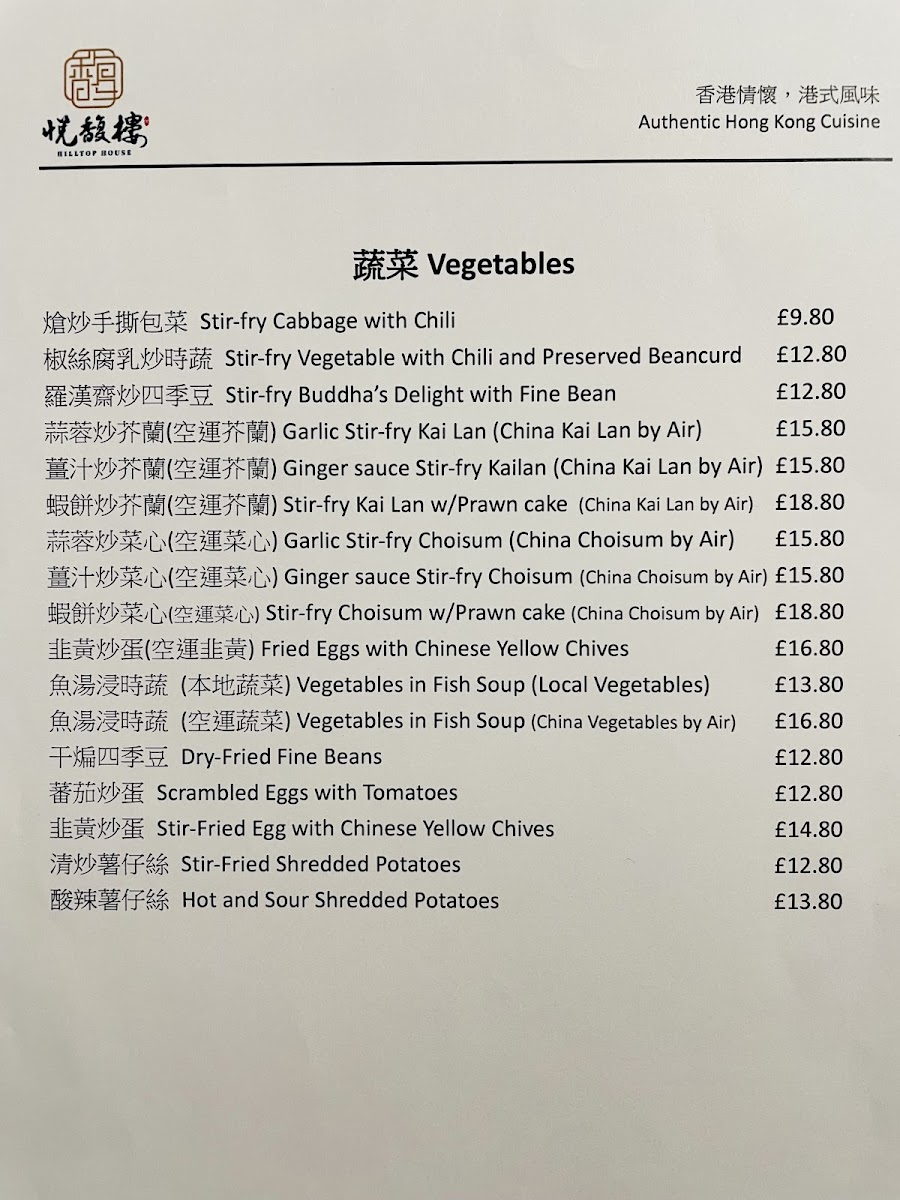 The menu at Hilltop House offers a wide array of dishes that cater to various tastes, with a strong emphasis on traditional Chinese flavors. For starters, you can enjoy options such as the Mixed Starter for 2 People, Crispy Seaweed, and Vegetable Spring Rolls (10pcs), all providing a perfect beginning to the meal. Dim sum lovers can indulge in a selection like the Har Kau Prawn dumplings or Siu Mai Prawn and Pork, as well as the Shanghai Dumpling Pork. The Seafood Tofu Soup and Poached Chicken with Ginger and Spring Onion stand out in the chef recommendations, offering rich and comforting flavors. For soup options, choices like the Sweetcorn Soup and Chicken and Sweet Corn Soup are available, perfect for warming up. The King Prawn dishes are a must-try, with the Kung Po King Prawn and King Prawn with Cashew Nut among the popular picks. There is also a variety of curry options such as the Special Curry and Chicken Curry, which provide a blend of rich spices. For those craving sweetness and tang, the Sweet and Sour King Prawn HK Style or Sweet and Sour Pork HK Style are delectable choices. The BBQ section, featuring Roast Duck and Crispy Pork Belly, presents hearty, flavorful dishes cooked in the Hong Kong style. In the rice and noodle categories, favorites like Seafood Fried Rice and Chicken Chow Mein are on offer, ensuring both classic and innovative choices. The menu also includes various tofu dishes, such as the Mapo Tofu with Minced Pork, and an assortment of side sauces to complement your meal, including Sweet and Sour Sauce and Plum Sauce. Overall, Hilltop House’s menu is a delightful exploration of Chinese cuisine, featuring diverse dishes that cater to different preferences and tastes.